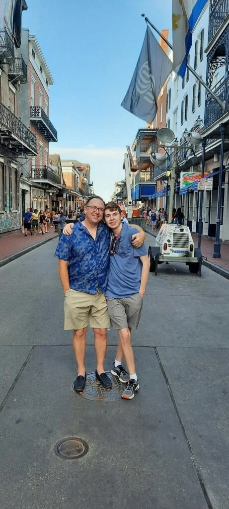 Matt and Noah sing together in the Oxford Civic Chorus, when not repairing homes for neighbors.